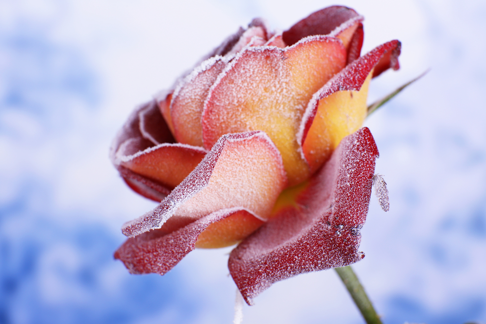 It has taken an act of my will to get me outside on this cold, crisp morning . . . and I’m surprised to see a rose attempting to bloom. I love this rose bush. She grows the most gorgeous peach-colored petals that when they bud out have the softest yellow hue. Today, somehow missing the hibernation cue, she has endeavored to produce one last bloom. Cold nights have stunted her progress. Frozen, the beautiful rose bud has stopped just short of its potential fullness.