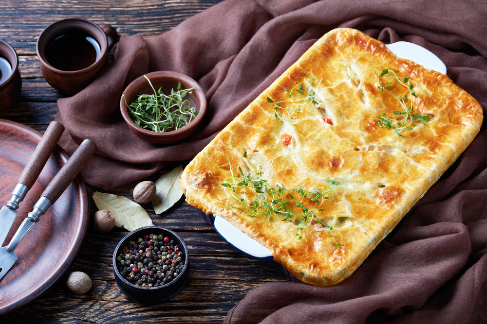 Mix all the ingredients except the pastry and the cheese in a large bowl.